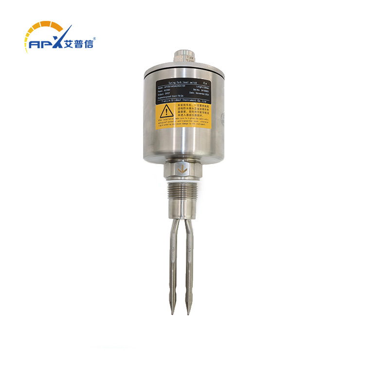 標準款音叉物位開關,優質防爆鑄造鋁殼,不銹鋼銘牌,sus316叉體材質。 型號:APXYC504 應用:液體/粉體 供電:24VDC/220AC 輸出:繼電器(DPDT) 連接過程:G1''螺紋 叉體長度:100mm 介質溫度:-30℃-80℃ 壓力:≤4MPa 防爆等級:Exd IIC T6 Gb 防護等級:IP65